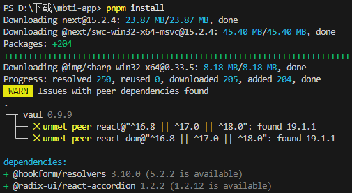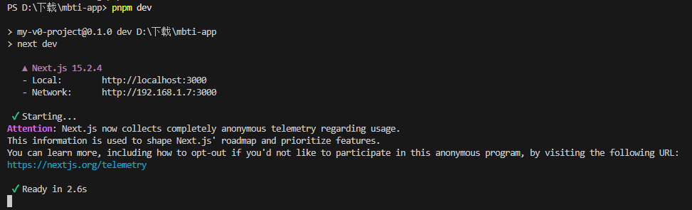 然后回到我们的终端使用pnpm安装依赖并启动,使用pnpm install安装依赖,然后使用pnpm dev启动项目