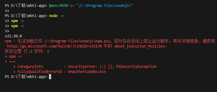 可能会出现以下情况,是因为 PowerShell 的执行策略阻止运行脚本(Windows 默认安全限制)