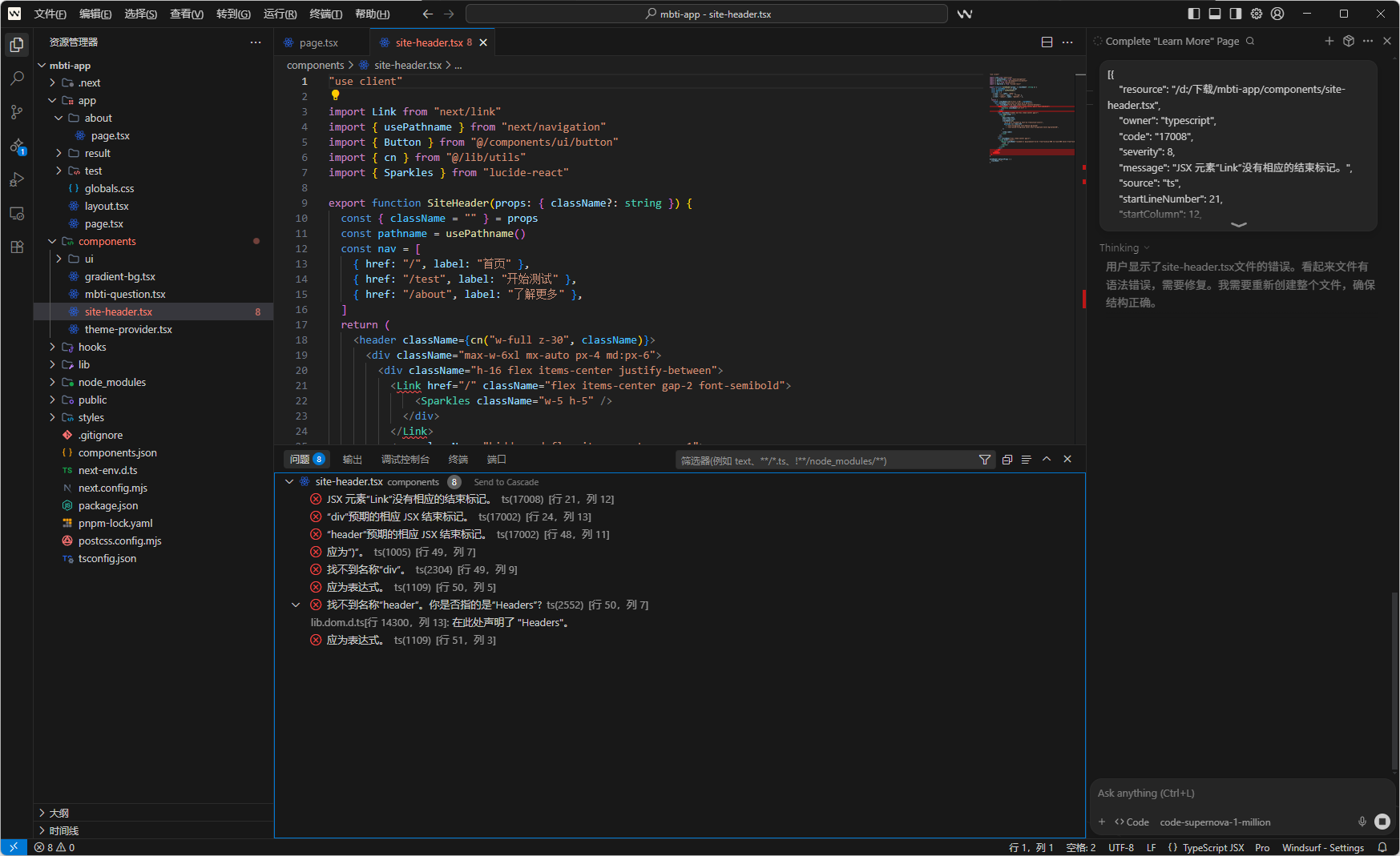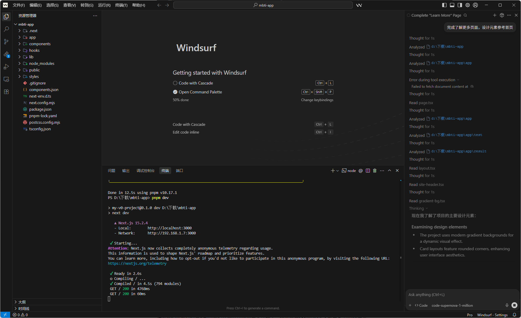正如前言所说,我萌生了一个想法,我突发奇想想制作一个测试MBTI性格的网站,但是我很多都不懂,那怎么办?拜托!现在已经是2025年了,想要自定义一个网站已经不是难事了,现在把目光转向已经落地的AI软件,例如Windsurf,Cursor,v0.app,Claude Code等等,这里只举例这些比较知名的氛围编码软件,到这你可能就提出疑问了:“氛围编码是什么?”