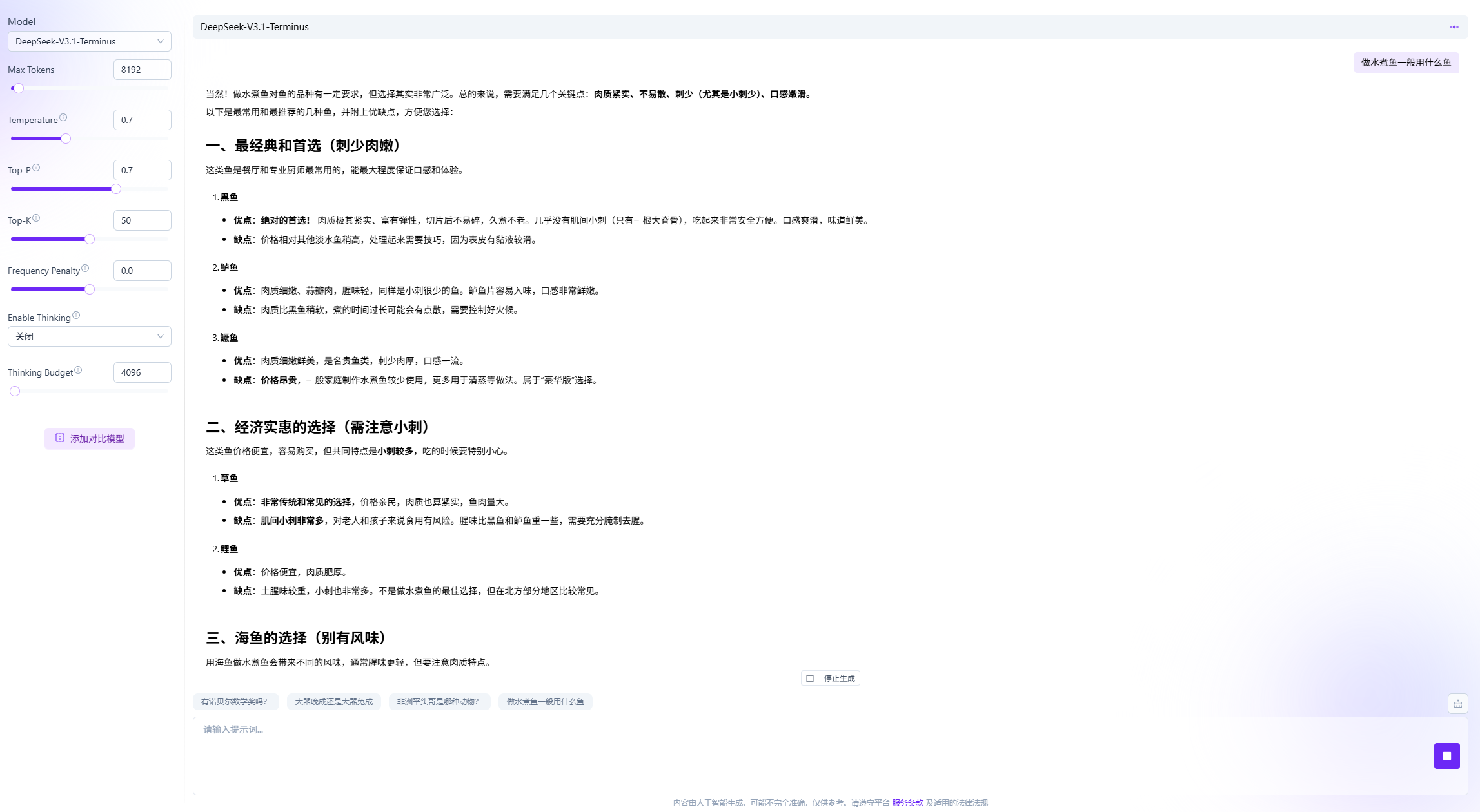 这就是我们最熟悉的方式,比如打开 DeepSeek 或其他类似产品的网页,在对话框里输入问题,然后等待回答。这种方式的优点是极其简单、直观,零门槛上手。但缺点是,你通常无法精细地控制模型的输出行为,就像相机的“自动模式”。